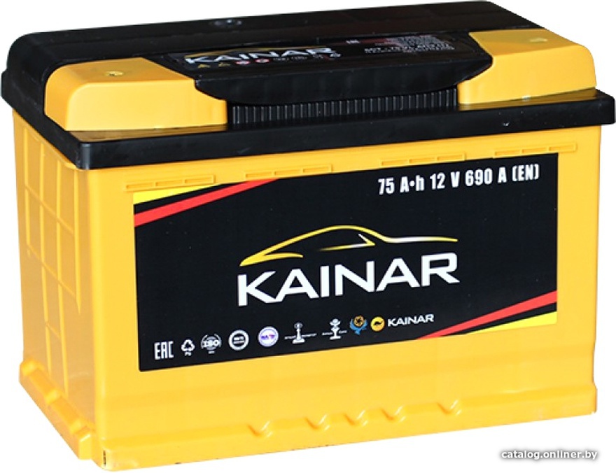 Аккумулятор автомобильный Kainar 75 R+ низк.