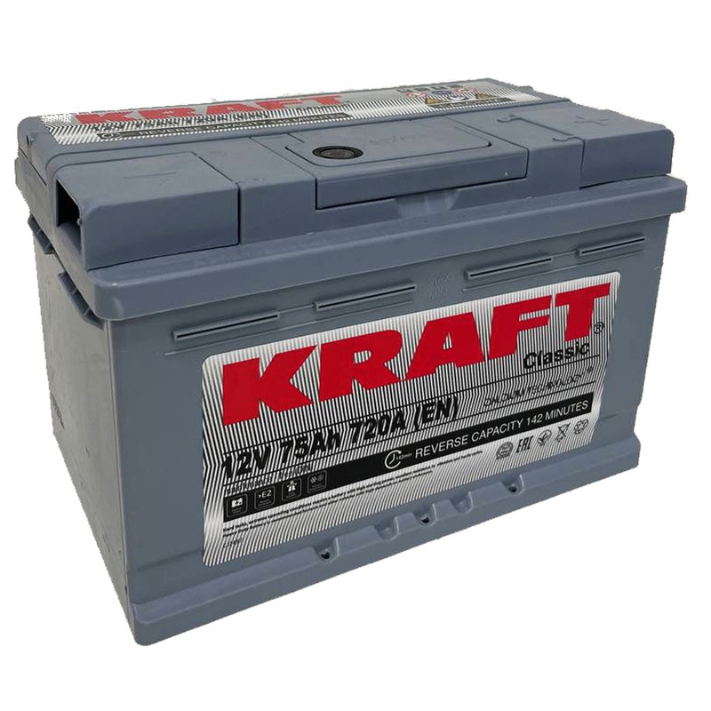 Аккумулятор автомобильный KRAFT 75 R низк.
