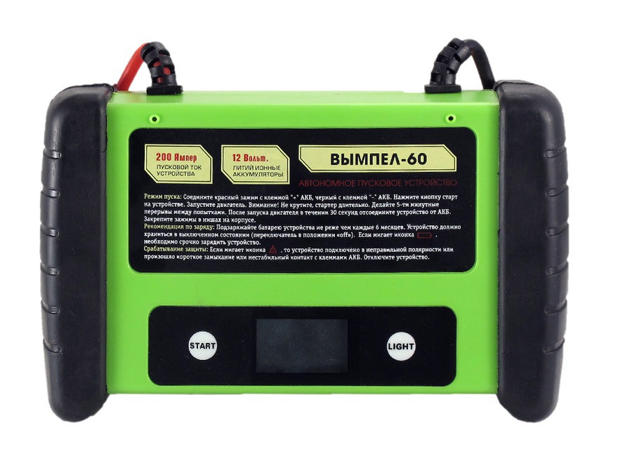 Модель пускового устройства Вымпел 60 предназначается для пуска мотора при большой степени разряда аккумулятора или же в условиях низкой температуры окружающей среды. Устройство является автоматическим и самостоятельно способно изменять режимы пуска и заряда. В принципе работы устройства заложено высокочастотное преобразование энергии в цепи. Именно поэтому устройство является достаточно портативным и имеет небольшие габариты. Также стоит отметить, что Вымпел 60 не требует подключения к сети 220 и является автономным.